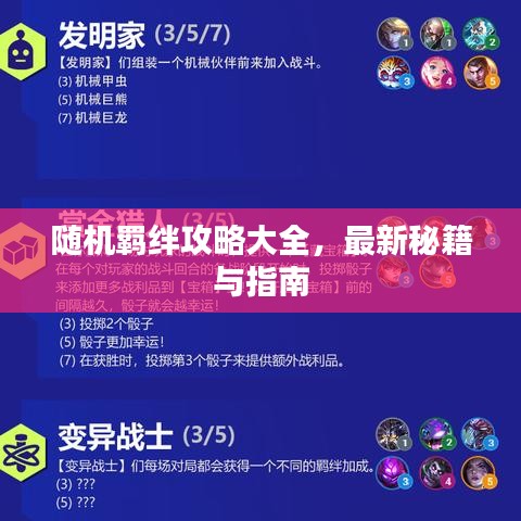是本文关于随机羁绊攻略大全最新的内容,希望能对广大游戏爱好者有所帮助,随着游戏的不断更新和升级,更多的随机羁绊和攻略将会出现,让我们共同期待并努力获取更多的游戏成就。